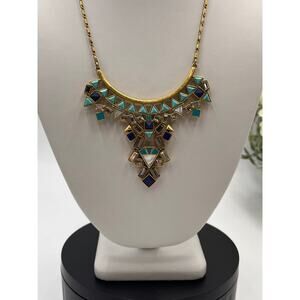 Statement piece with removable pendant. Versatile 16-1/2" with 4" extender, Gold finish with turquoise and multi-colored stones and accent crystals. In excellent like new condition.