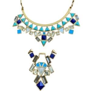 Stella & Dot Blue Navy Turquoise White Gold Tone Mosaic Stone Tile Detachable Pendant Necklace