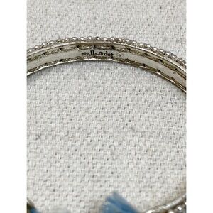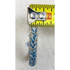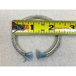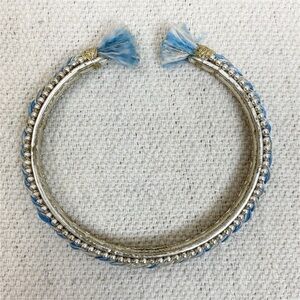 Silver tone cuff bracelet with braided cord inset and beaded trim - gently worn, no flaws