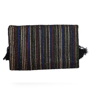 Stella & Dot Bohemian Multicolor Woven Fringed Large Taj Clutch Purse Handbag