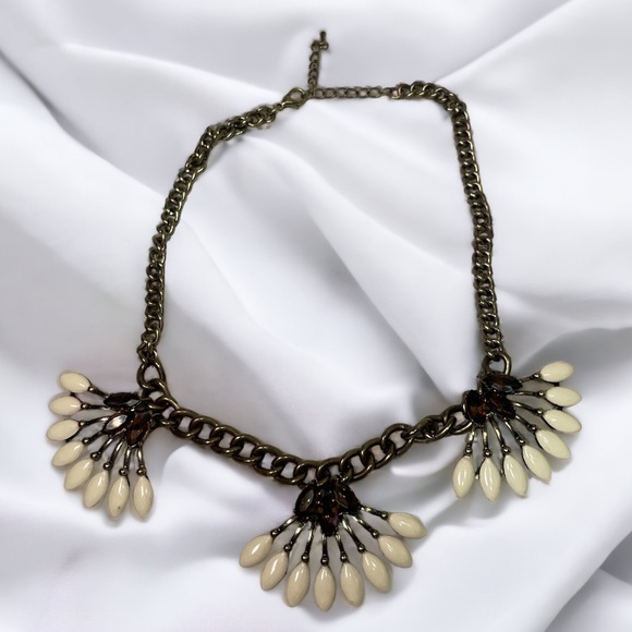 Stella & Dot Brass Tone Statement Necklace with White Enamel & Brown Rhinestones