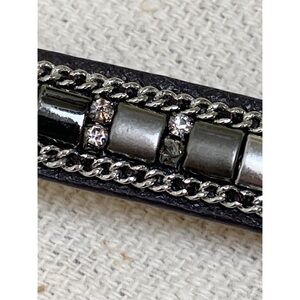 Leather band adorned with chain and rhinestones - wrap style with snap closure- gently worn, one rhinestone is askew in its setting but it is there