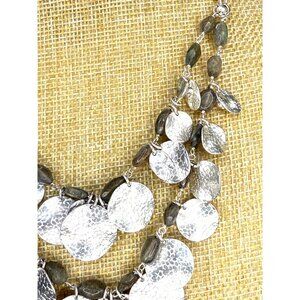 A versatile accessory featuring labradorite stones and hammered silver discs, this Stella & Dot Calypso Coin necklace is crafted for elegance and durability.