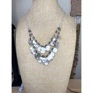 Stella & Dot Calypso Coin Statement Necklace With Hammered Silver Discs & Adjust