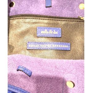 Stella & Dot large tote bag in a beautiful bright blue color with pinking shears edge trim, a blue leather tab closure and inside snap closure. Zippered compartment on the inside.