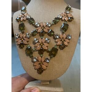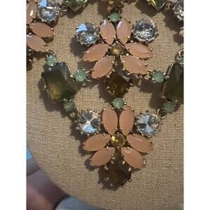 Stella & Dot Floral Statement Necklace Pink & Green Stones with clear Rhinestone. Add a pop of color to your outfit with this beautiful Stella & Dot statement necklace! Featuring a stunning floral design with pink and green stones, this necklace is sure to turn heads. The clear rhinestones add a touch of sparkle and elegance. Perfect for dressing up a casual outfit or adding the finishing touch to a special occasion look.