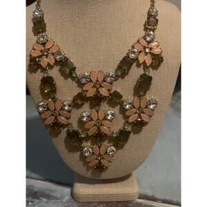 Stella & Dot Fluerette Statement Necklace Pink & Green Stones w clear Rhinestone