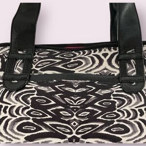 Stella & Dot Getaway tote bag in black and white zebra print canvas, excellent used condition.