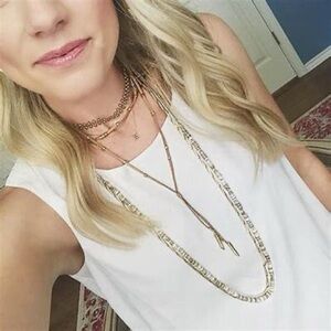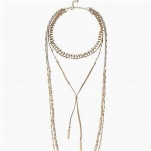 This exquisite necklace set by Stella & Dot combines the elegance of gold and silver tones in a layered design. Featuring a choker-style necklace and a longer piece with delicate beading, it offers a sophisticated touch to any ensemble. Perfect for everyday wear, this set effortlessly elevates your style.