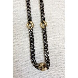 Long adjustable length gunmetal tone chain with gold tone rhinestone encrusted accent links - gently worn, some color loss in neck area, silver tone color is showing in some places please see photos for accurate depiction of condition- still lots of life in this necklace