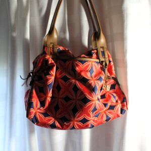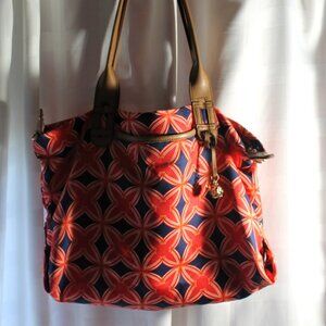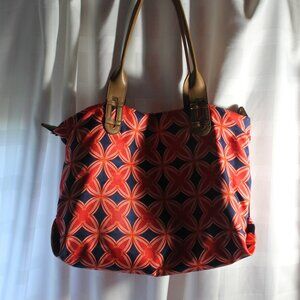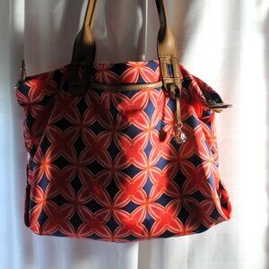 Stella & Dot "How Does She Do It" Bag in red and navy blue pattern