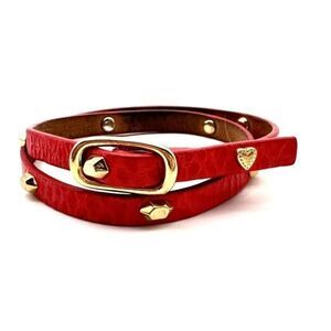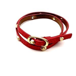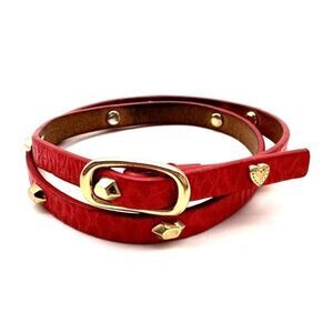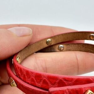 Stella & Dot Hudson Pink/red & Gold Tone studded Leather Wrap Bracelet Festival