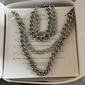 Stella & Dot La Coco Silver Curb Chain Link Necklace and Bracelet Set