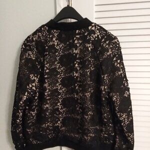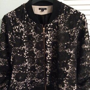 Fashionable Stella & Dot Black Lace over Blush pink zip up jacket. Plush elastic collar, cuffs & waistband. Convenient inset side pockets, fully lined, sturdy zipper closure. Size XL. Rarely worn. Almost like new.