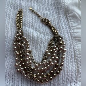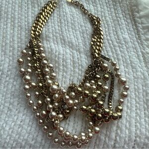 Stella & Dot Lucia Pearl Statement Necklace Chunky Champagne Chain Gold