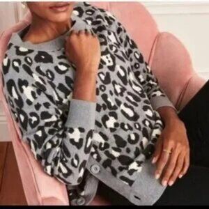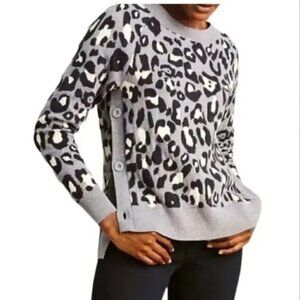 Stella & Dot M Leopard Animal Print Wool Blend Sweater Side Button Medium