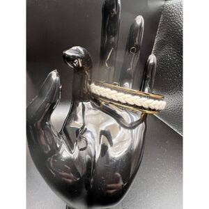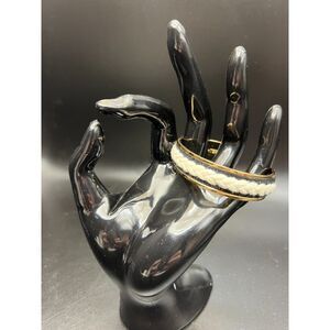 Stella & Dot Mother Sister Daughter cuff bracelet. Black textile base with white braid on top.