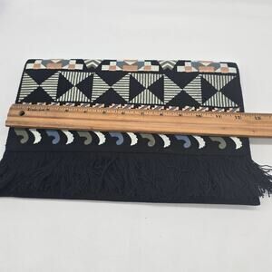 Stella & Dot New Aztec Embroidered Fringed Clutch Bag Boho Black Geometric