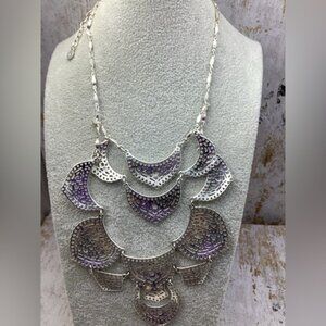 Make a bold statement with this elegant silver necklace. Perfect for any occasion. Hammered silver this Stella and dot necklace is so delicate and beautiful. It is 20 inches long. In mint condition.