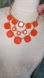 Stella & Dot orange "Olivia" statement necklace. This gorgeous necklace is a orange/red color with gold tone metal. The back features a lobster claw clasp and the Stella & Dot signature.