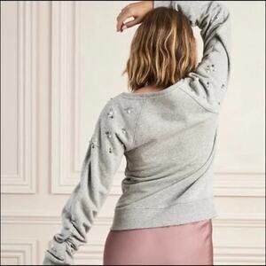 Stella & Dot Pearl Embellishments Sweatshirt Gray Round Neck Long Sleeve Size 2X