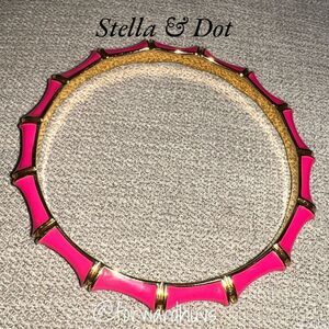 Stella and Dot gold tone and pink enamel Julep bangle bamboo style bracelet in good preowned condition. This has no stains or damage and has been loved by its previous owner.