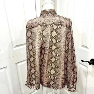 Stella & Dot Plus sized 2X long sleeve snake print button down shirt w neck tie