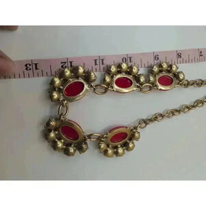 Stella Dot Red Goldtone Rhinestone Necklace Statement Piece Like New Condition