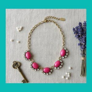 Stella & Dot Red Pink Stones Gold Chain Statement Necklace