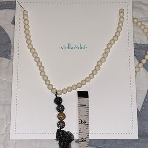 Unveil timeless elegance with the Stella & Dot Revival Tassel Necklace, a newfound treasure from my 2010 vault. Item N200, this retired gem boasts white beads enveloping a rosary-style necklace, leading to a tassel adorned with faceted black, silver, and pewter metallic glass orbs. From boardroom to evening cocktails, watch as a young professional effortlessly transitions, making a powerful statement with this coveted necklace. The tassel, a cascade of sparkle, can be worn long or short with the versatile S hook, offering you choices that are simply stunning 💫. Embrace the delicate glimmer, a celebration of sophistication in every layer.