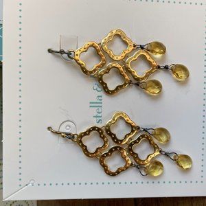 Lovely chandelier style stella & dot clover drop earrings feature faceted yellow glass drops - NEW IN BOX