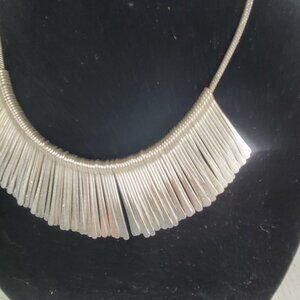 Stella & Dot Silver Metallic Abstract Contemporary Fringe Statement Necklace