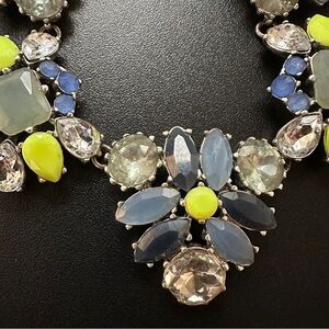 Bold and beautiful Stella & Dot Elodie rhinestone and multi-color faceted stone silver tone necklace. Necklace is in excellent condition, no damage, no missing stones, silver part shows minor wear. Add a pop of fresh color to your wardrobe! Blue, citron and clear stones.