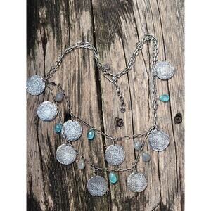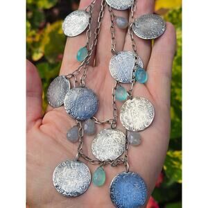 Stella & Dot Sterling Silver Coin Blue Chalcedony Labradorite Necklace 18.5"