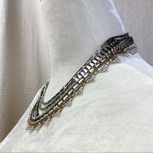 Mixed metal multi strand necklace- can be worn multiple ways, the rhinestone strand can be removed and worn alone or worn without- long or short - great versatile necklace - missing one rhinestone (shown in photos)