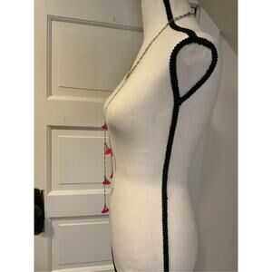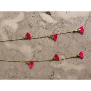 Stella & Dot Gold and Pink Tassel Fan Wrap Statement Necklace Beautiful pink tassel fans adorn this gold Metal necklace with an Art Deco feel.
