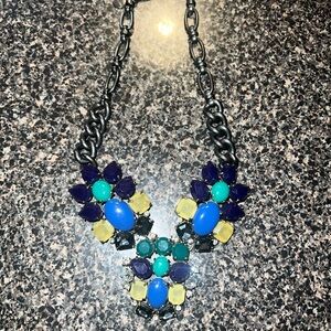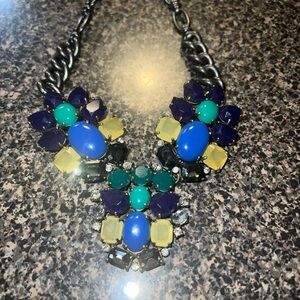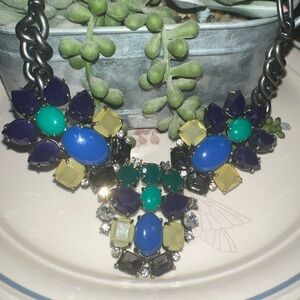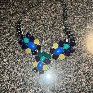 This stunning statement necklace features a vibrant mix of colors, perfect for adding a pop of color to any outfit. The bold design is ideal for making a fashion statement.