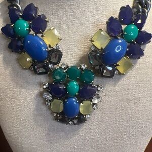 Stella & Dot Vtg Victorian Gothic Rhinestone Bib Necklace Fruit Salad Cabochons