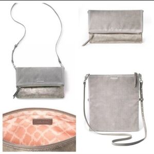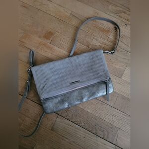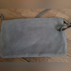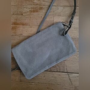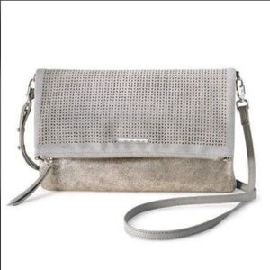 Stella & Dot Waverly Petite in: SLATE GREY PERF/BRUSHED METALLIC. Versatile 3 in 1 style. Perfect crossbody or clutch bag for day or night.