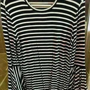 Adorable bell sleeved striped top. Classic look with fun sleeves!