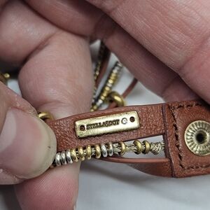 Stella & Dot brown faux leather wrap bracelet with gold and silver metal accents