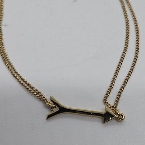 Two tone bracelet. Front is a set of gold tone chains that come together at a bar pendant shaped like an arrow. Back is a slider/drawstring style closure in bright yellow threading. Has Stella & Dot branded charm. In good used condition with no known flaws.