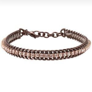 Stella & Dot vintage copper cup chain bracelet with pink rhinestones