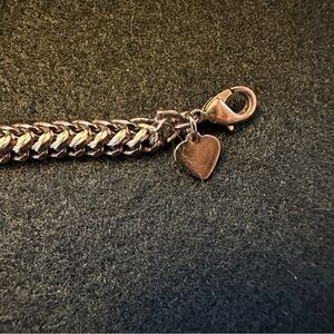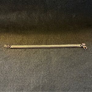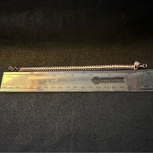 Stella & Dot copper cup chain bracelet with Pink sparkly rhinestone. Set in a vintage looking copper bracelet. Lobster clasp with small heart. Measures approximately 7.5 inches with short chain extender.
