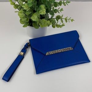 Stella & Dot royal blue wristlet clutch with gold hardware