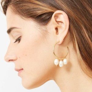 Stella & Dot x Rebecca Minkof Natriella Pearl Drop+Gold Hoop Earrings
