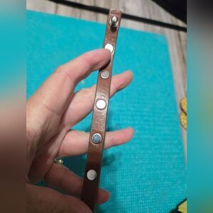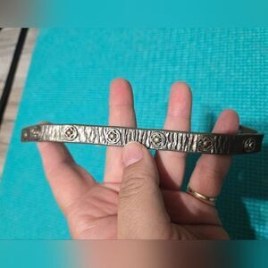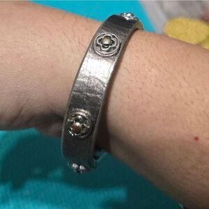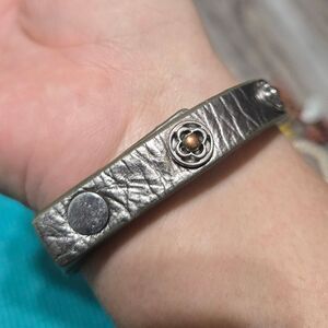 Stella & Dot Clover Single Wrap Leather Silver Pewter Metallic Flower Bracelet