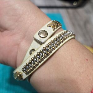 Stella & Dot Gilded Path Double Wrap White Leather & Gold Arrow Bracelet