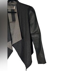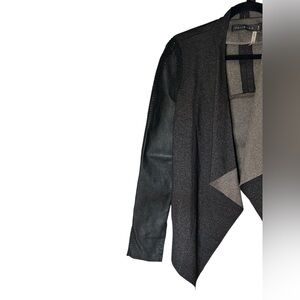 Stella Jamie Jacket Open Asymmetric Hem Crochet Drape Leather Sleeve Size Large