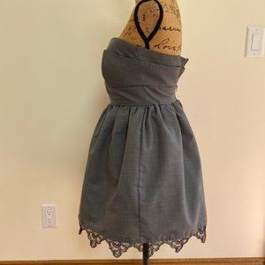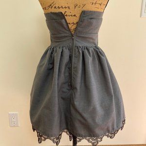 Stella & Jamie Strapless Dress Size Small S Gray with Black Lace Hem Gently used condition, some very minor marks under the armpits and zipper pull has been taken off on the back as pictured. LL